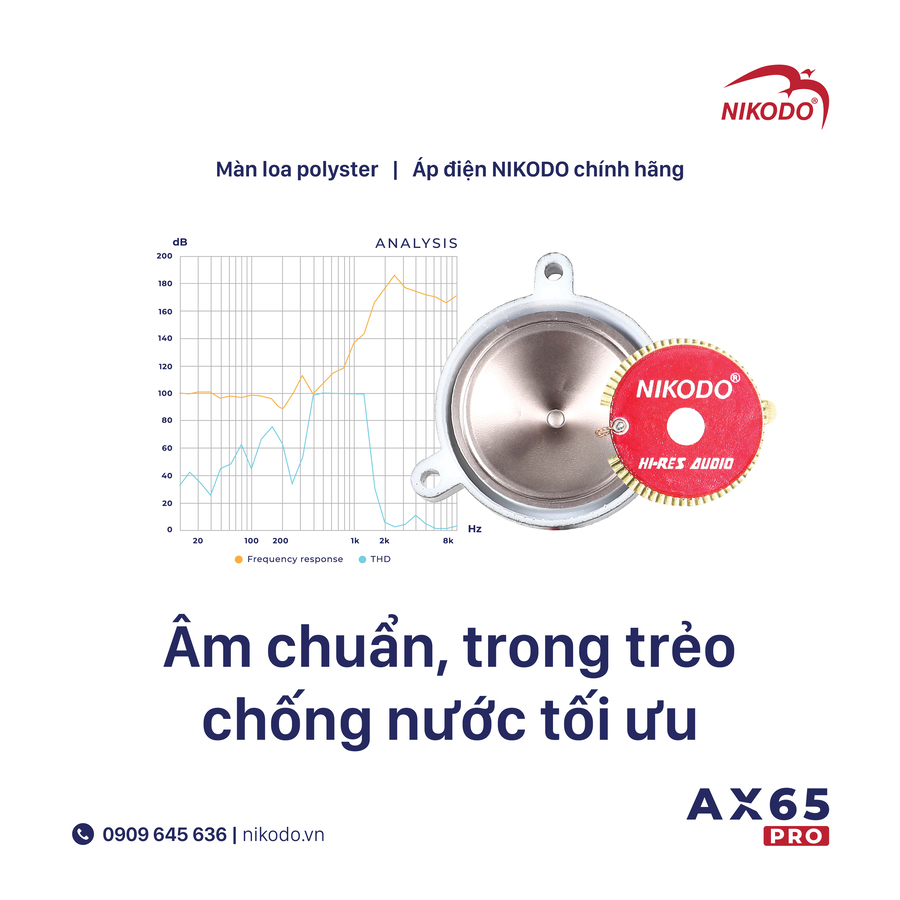 - Phần áp điện chính hãng in logo Nikodo tạo ra chất âm chuẩn không bị méo tiếng khi truyền tải.